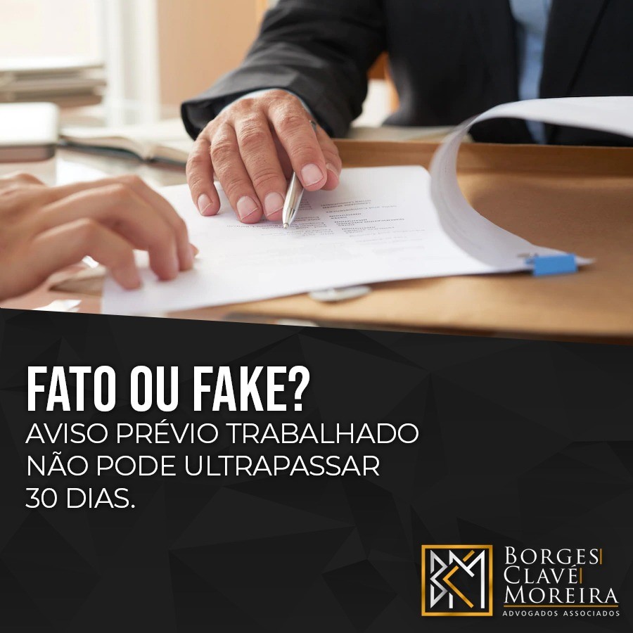 FATO OU FAKE? Aviso prévio trabalhado não pode ultrapassar 30 dias.
